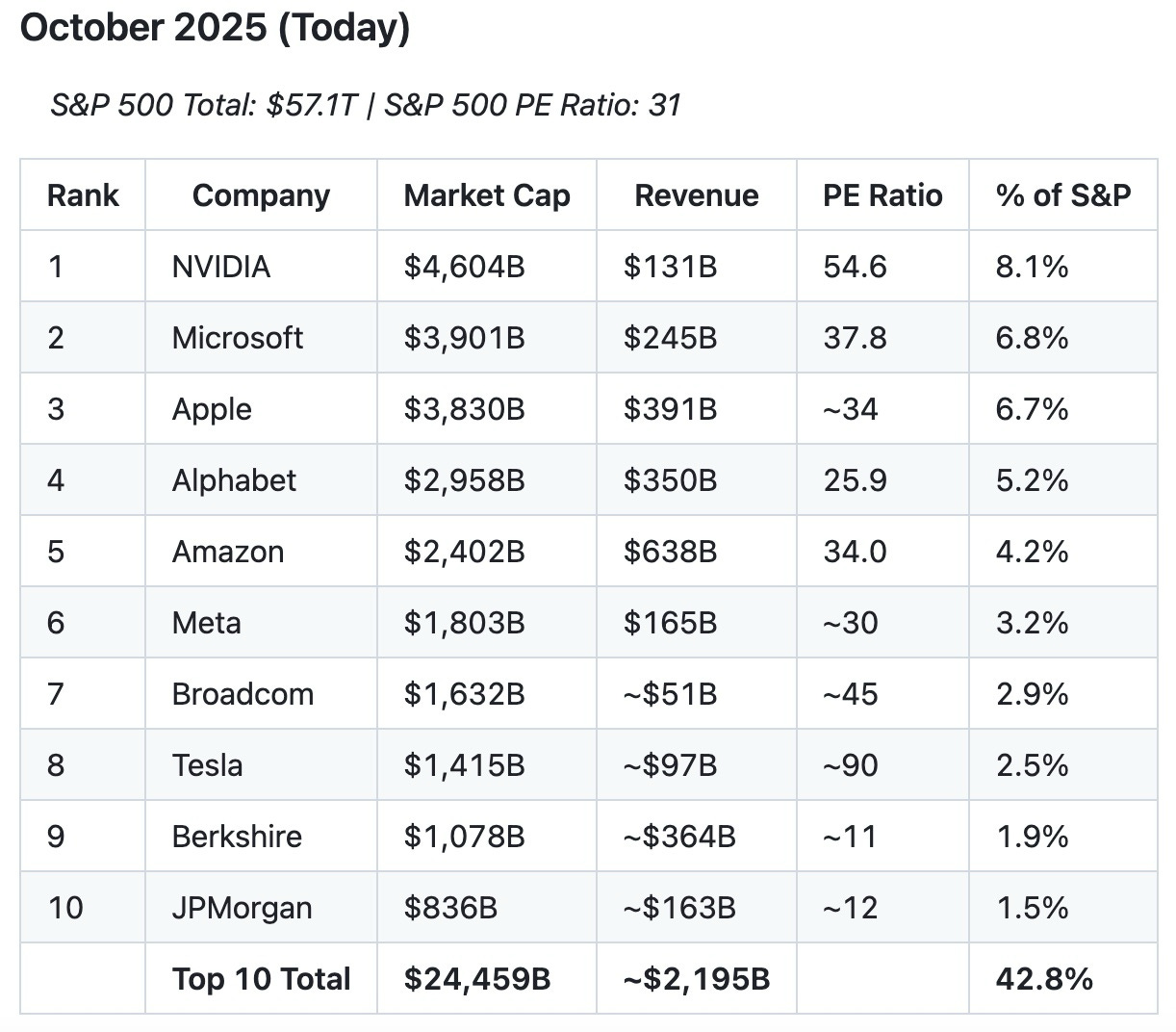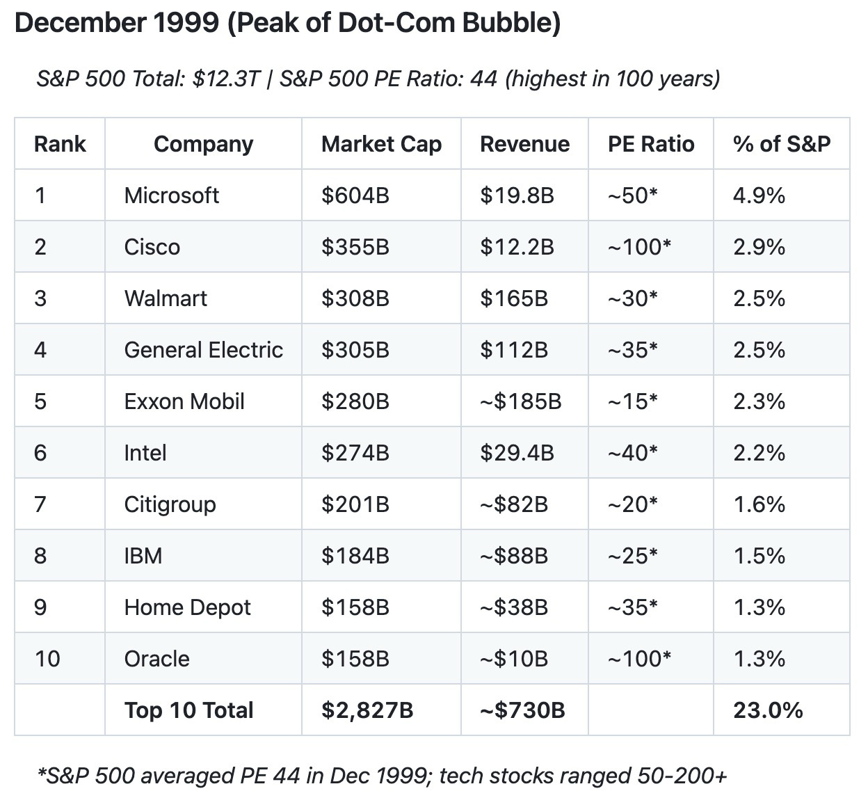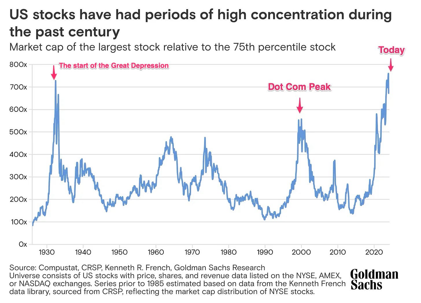 While 42.8% is an all-time high, it actually makes sense for top companies today to have higher concentrations because of the network effect and economies of scale created by leveraging technology.