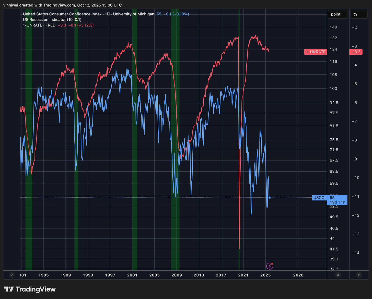 There’s an increase in unemployment rate and no significant change to cthe onsumer sentiment index (still being at recession level lows).