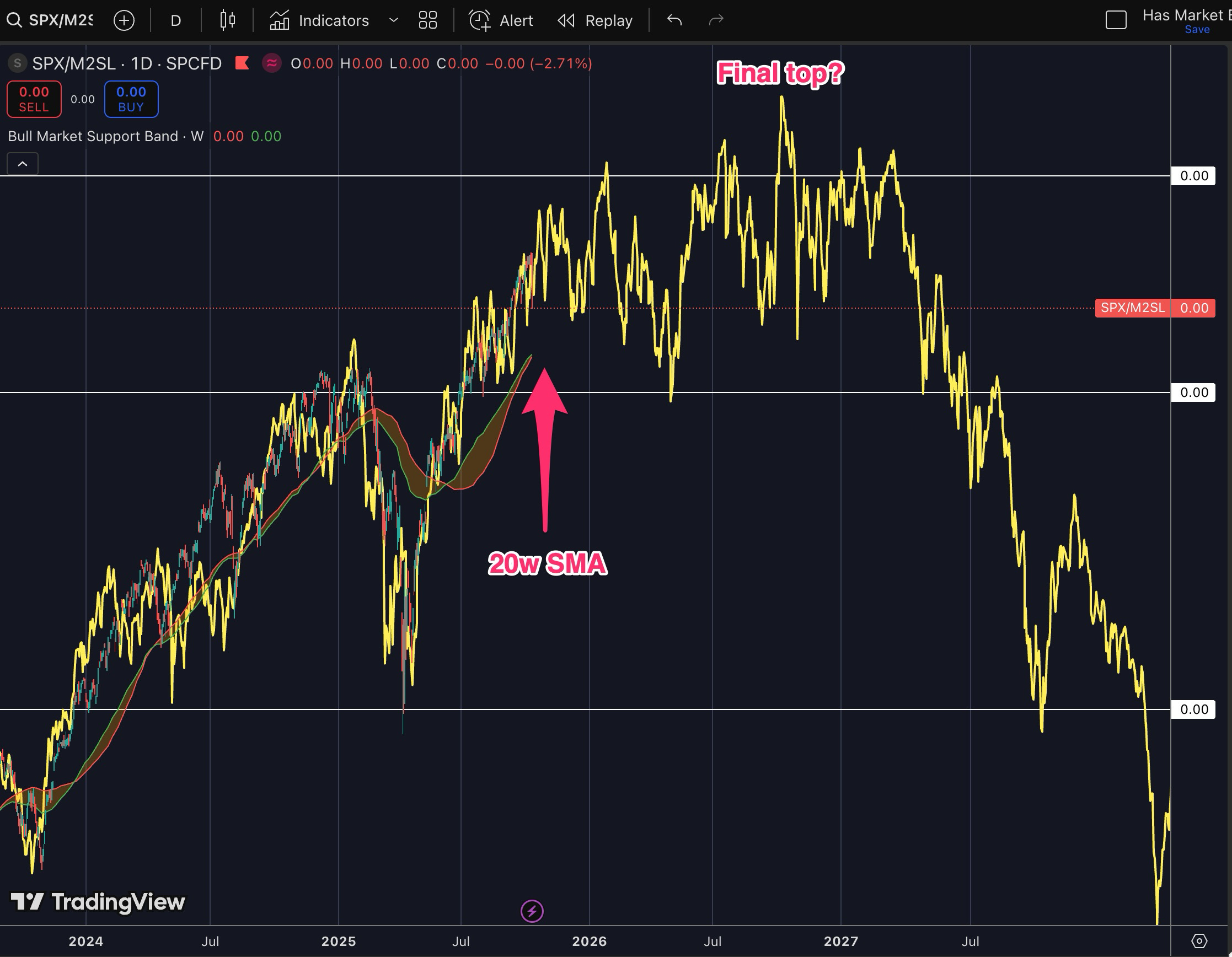 Increase volatility: Focusing in, we can see if this comparison is valid; there will be an increase in volatility ahead. Today SPX dropped 3% (10th of Oct 2025 closing). I think it is likely that it’ll touch the 20-week SMA support (corresponding to a 5% drop) and perhaps more volatility along the way on its way to the final top.