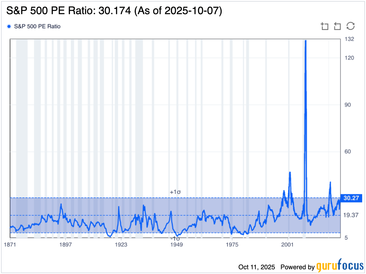 The price-to-earnings ratio (P/E ratio) was also something we visited last quarter. Compared to a quarter ago, it’s increased from 28 → 30. We continue our approach to +1 sigma.