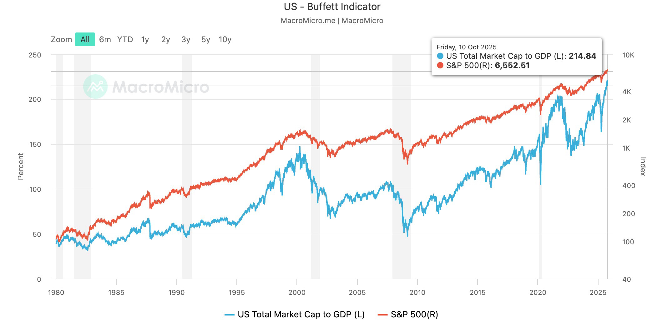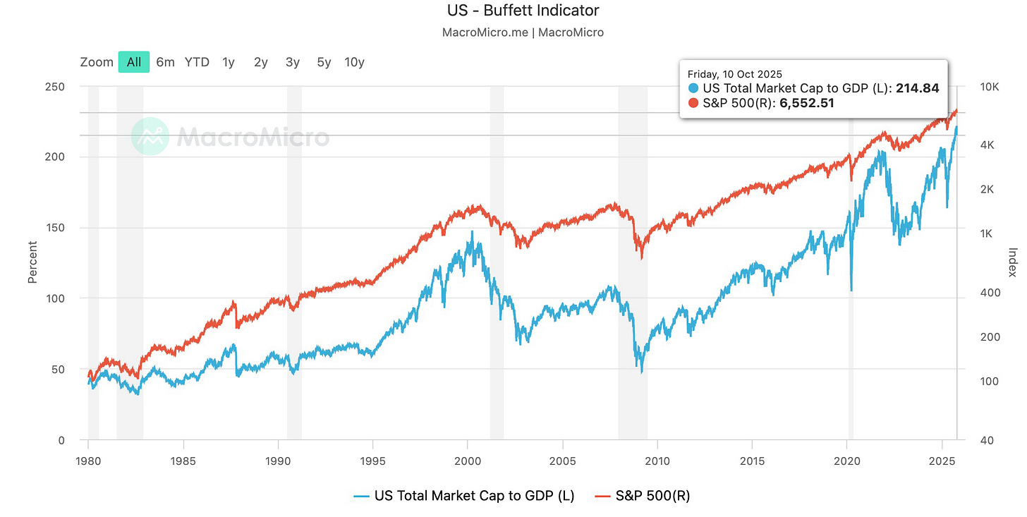No significant update here. Buffett indicator has continued to grow from 200% to 214% this last quarter.